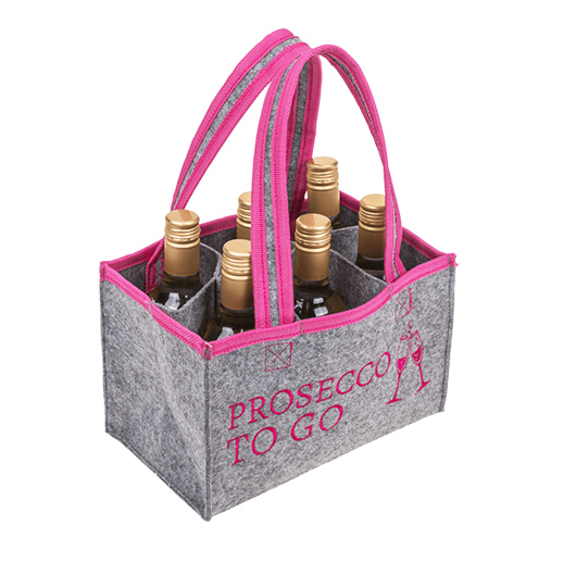 Diese stilvolle Filztragtasche ist der ideale Begleiter für alle, die ihren Prosecco – oder andere Lieblingsgetränke – gerne mit Stil geniessen.