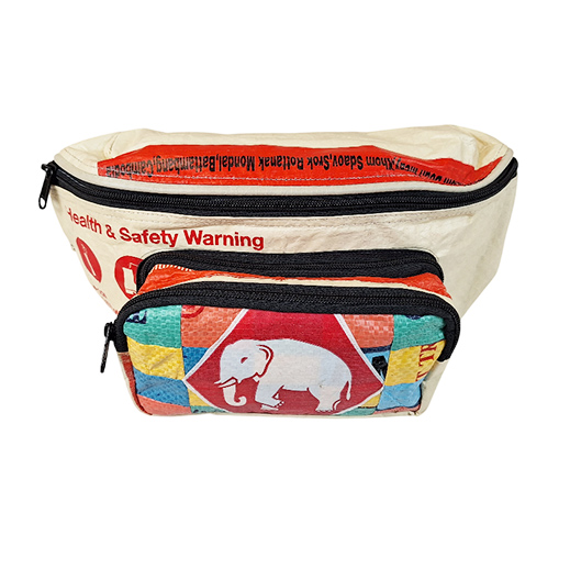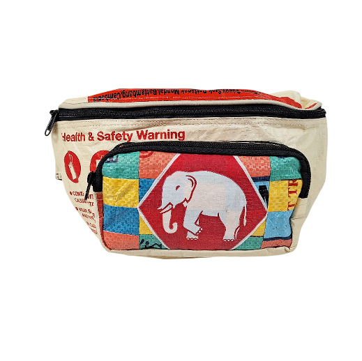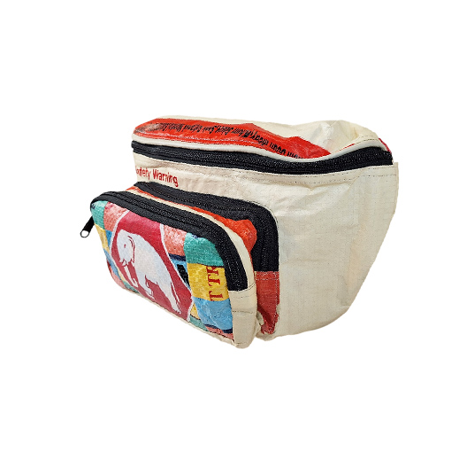 Diese praktische Bauchtasche vereint Funktionalität, Nachhaltigkeit und einzigartiges Design. Gefertigt aus recycelten Säcken ist jedes Stück ein Unikat und ein echtes Statement für umweltbewusstes Handeln.