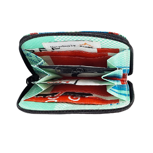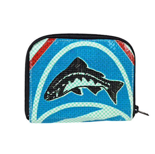 Diese nachhaltige Geldbörse kombiniert Funktionalität, Design und Umweltbewusstsein. Gefertigt aus recycelten Fischfuttersäcken, ist sie nicht nur ein echter Blickfang, sondern auch langlebig und umweltfreundlich.