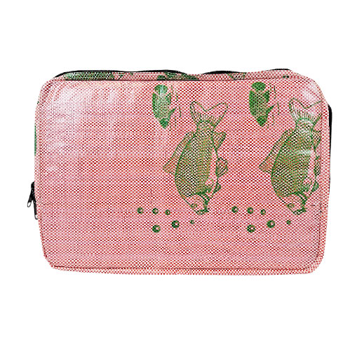 Alle Produkte, hergestellt aus Zementsäcken, Reis- und Fischfuttersäcken sowie Fahrzeugreifen, tragen das FairTrade-Siegel und werden unter strikter Einhaltung der 10 Gebote des FairTrade produziert. Dieses Projekt ist von der World Fair Trade Organisation zertifiziert und wurde von der UNESCO ausgezeichnet. Alle Accessoires werden in Zusammenarbeit mit den Dorfbewohnern entworfen und von Hand gefertigt. Jedes Stück ist ein Unikat, da die Materialausschnitte variieren können – dies liegt daran, dass die Säcke vollständig recycelt werden. Zum Beispiel wurde das Material mit dem Fischmotiv erst als Fischfuttersack und dann als Reissack verwendet, bevor es zu diesen exquisiten Accessoires umgewandelt wurde. Erfahren Sie mehr über die Herkunft und Herstellung unserer Produkte auf unserer Webseite unter dem Abschnitt “Über uns”.