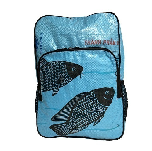 Dieser nachhaltige Tagesrucksack ist ein echter Hingucker mit Charakter. Gefertigt aus robusten, recycelten Fischfuttersäcken, überzeugt er durch Langlebigkeit, Wasserabweisung und Strapazierfähigkeit – ideal für Alltag, Arbeit oder Freizeit.